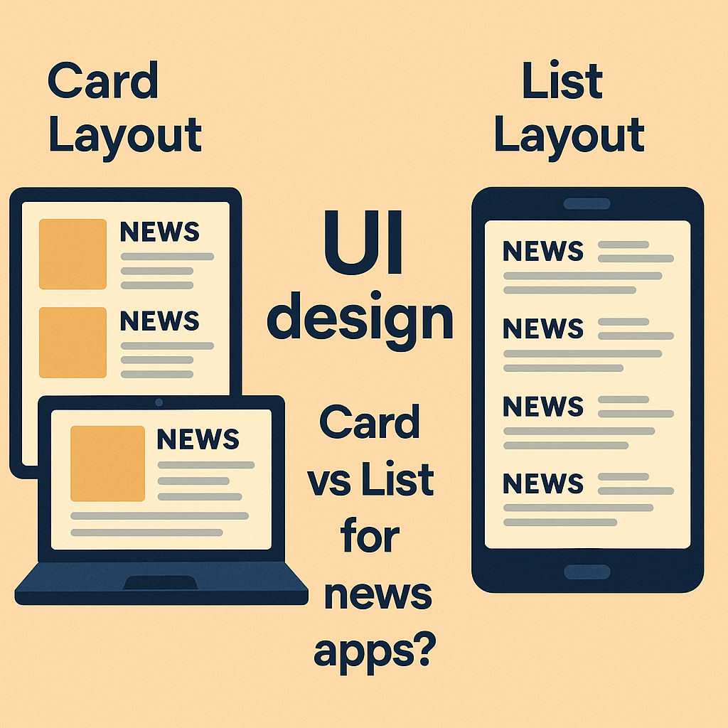 뉴스 앱이라면 홈에서는 카드형, 카테고리 뷰나 검색 결과는 리스트형을 적용하는 혼합 전략도 추천한다.