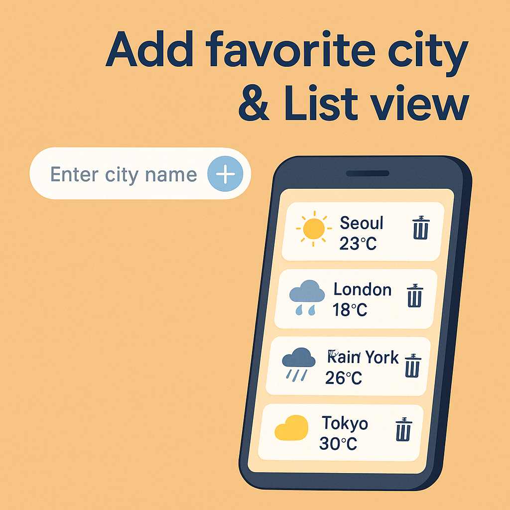 Flutter 날씨 앱은 이제 단순히 내 위치를 넘어서 내가 관심 있는 도시들까지 연결할 수 있다.